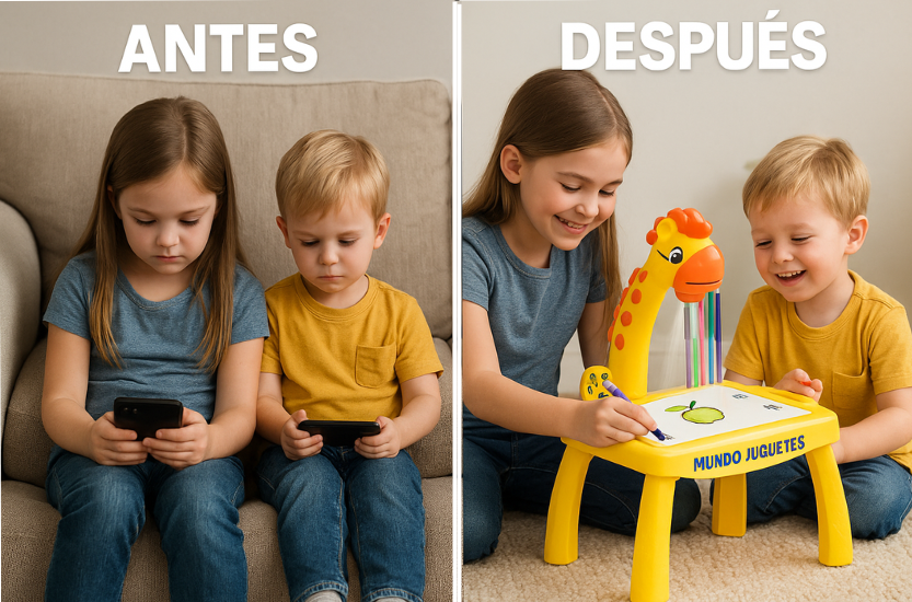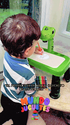 Insertá un disco, proyectá la imagen y tu hijo solo calca. No se frustra y aprende más rápido.